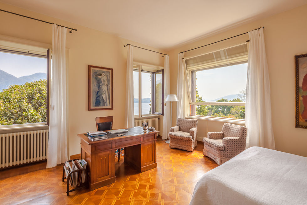 Dai colori ai materiali, dalle cromie che si ripetono nelle diverse stanze ai camini e ai pavimenti in legno e marmo nei bagni, tutto concorre a mantenere l'autentico fascino di una villa storica sul Lago Maggiore.